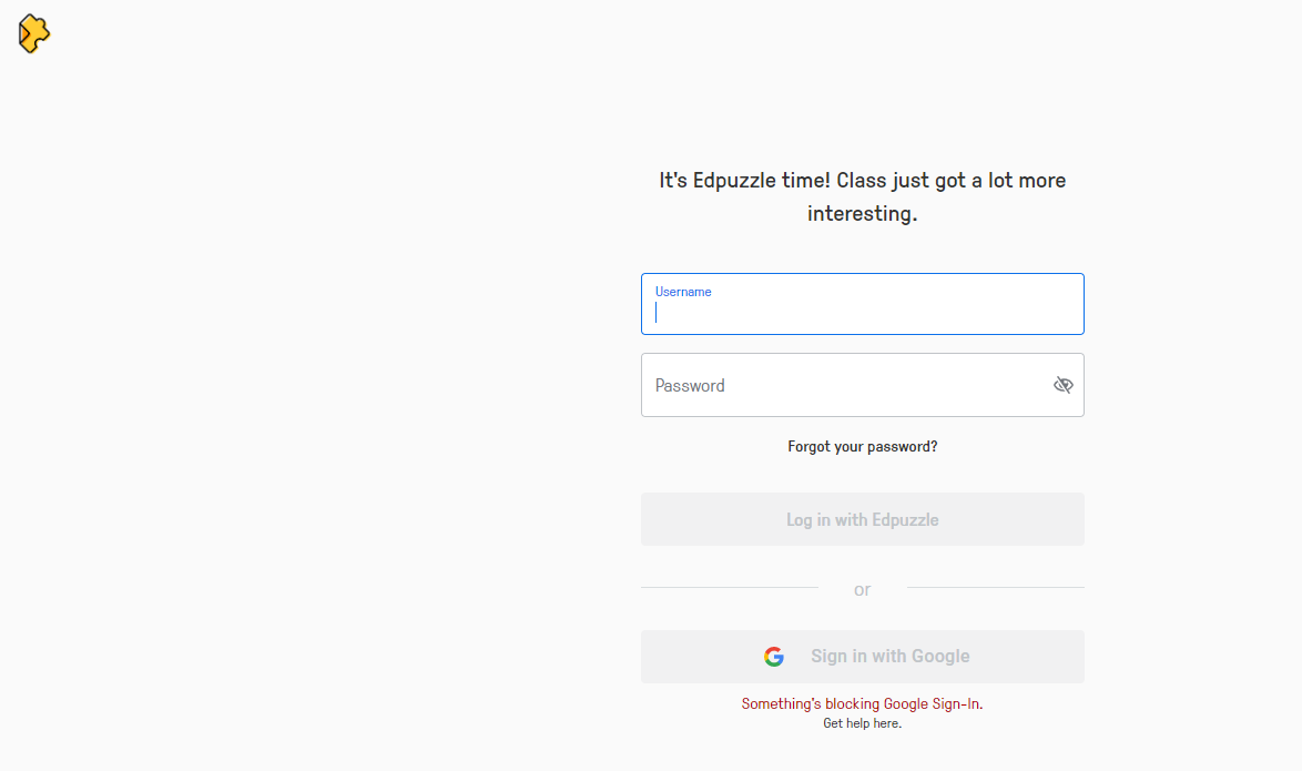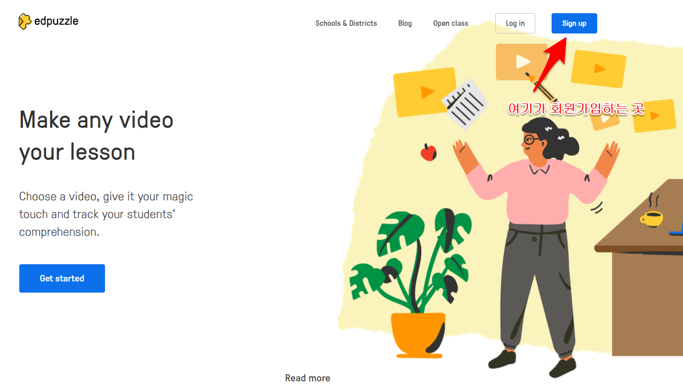 학생을 선택하고 [sign up with Edpuzzle]을 누르면 학급 코드로도 들어갈 수가 있어요.