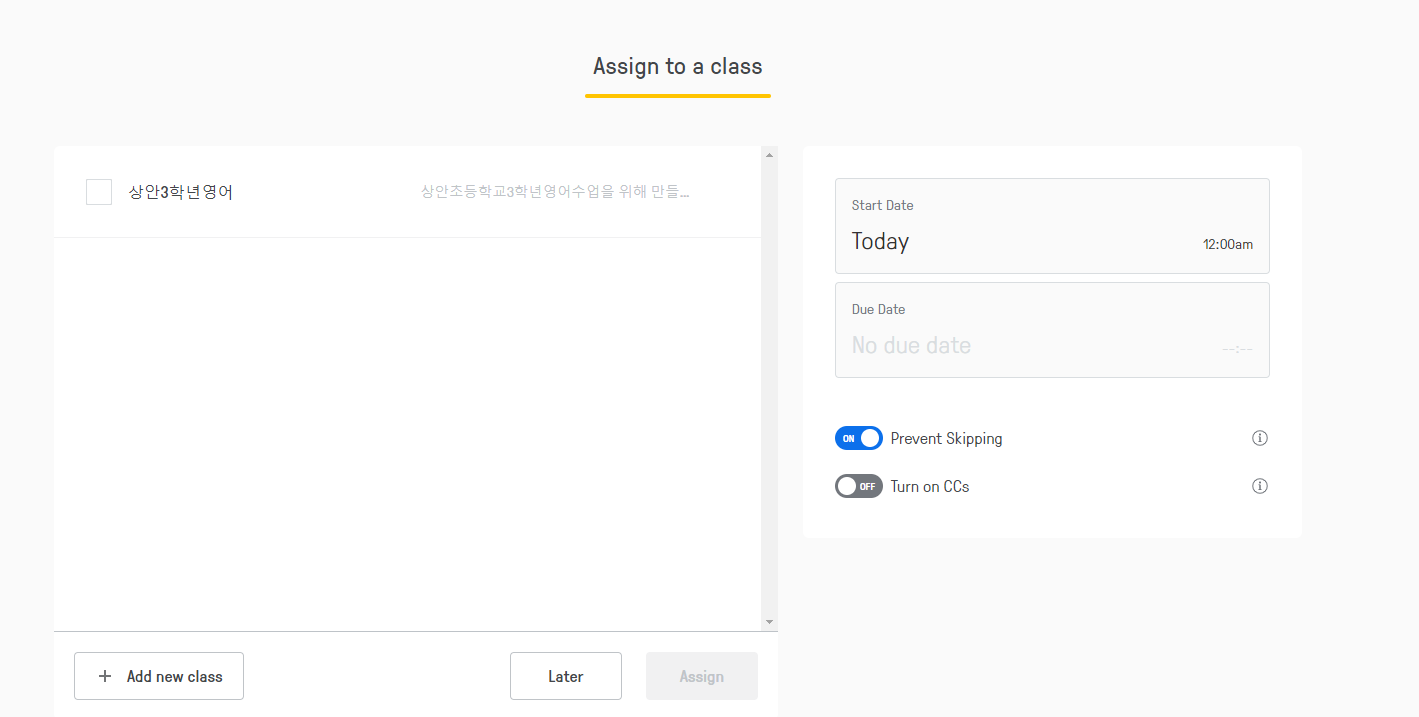 학년과 과목을 설정할 수 있어요. 저는 3학년 영어라 그리 선택했답니다.