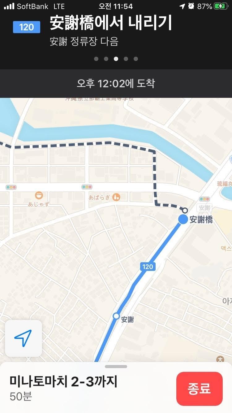 구글맵을 이용해 공항에서 120번 버스타고 내렸다. 버스에는 일본어, 영어, 중국어, 한국어 등이 표시되어 나와서 버스타기에 편했다. 오키나와의 대중교통은 거리별 요금을 납부하는데, 현금으로 계산하는 경우 탈 때 번호표를 가지고 내릴 때 그 번호표 요금만큼 납부하는 시스템이었다. 버스에서 내려서 걷는 데, 가로수를 보니 다른 나라에 온 것을 실감할 수 있었다.