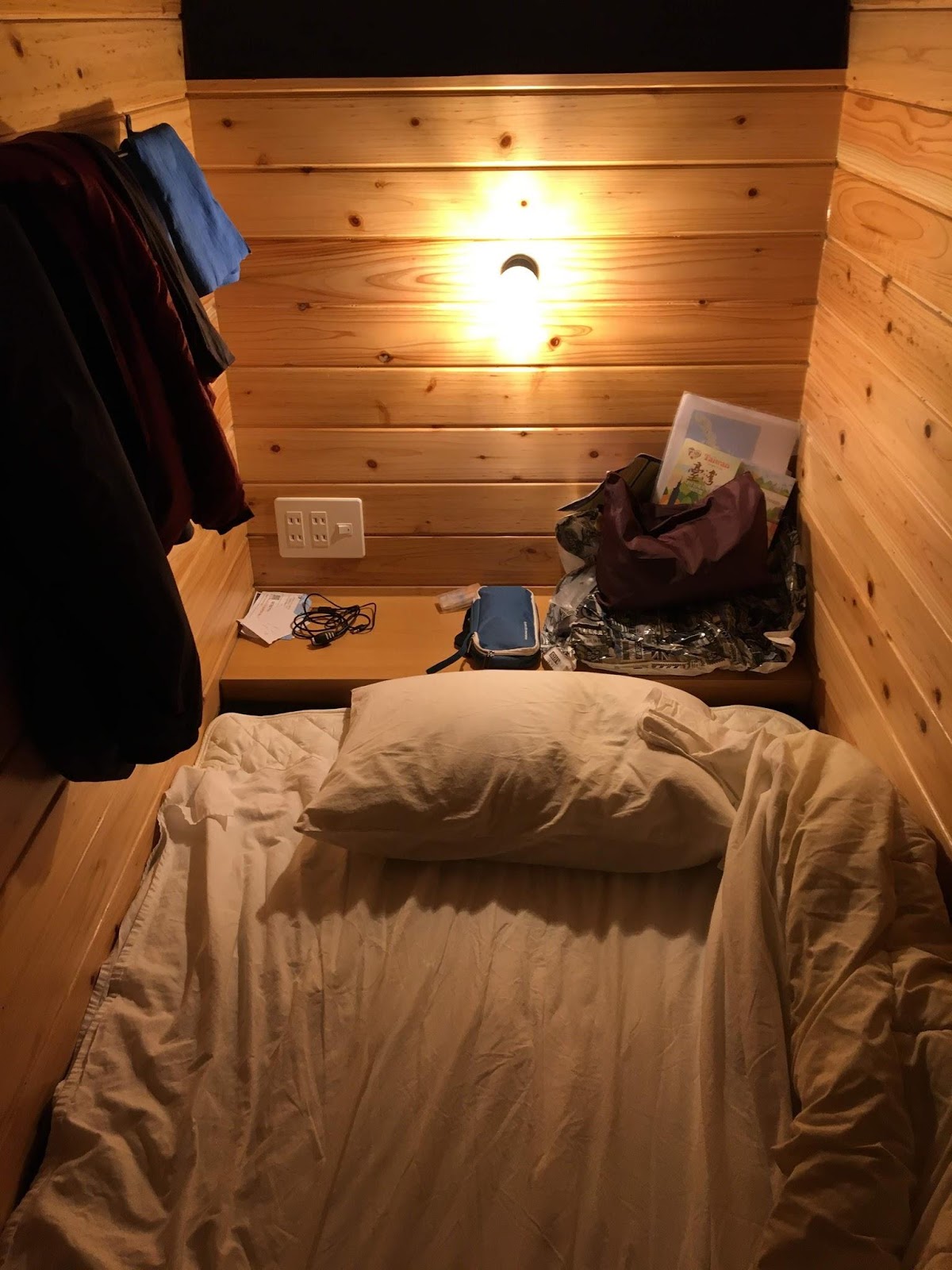 캡슐호텔, 게스트하우스. 호불호가 갈린다. 싼 맛에 예약했는데 세탁, 세면도구, 수건 등 추가비용 드는 경우 있다. 차라리 좀 더 주고 편하게 쉬는게 났겠다.