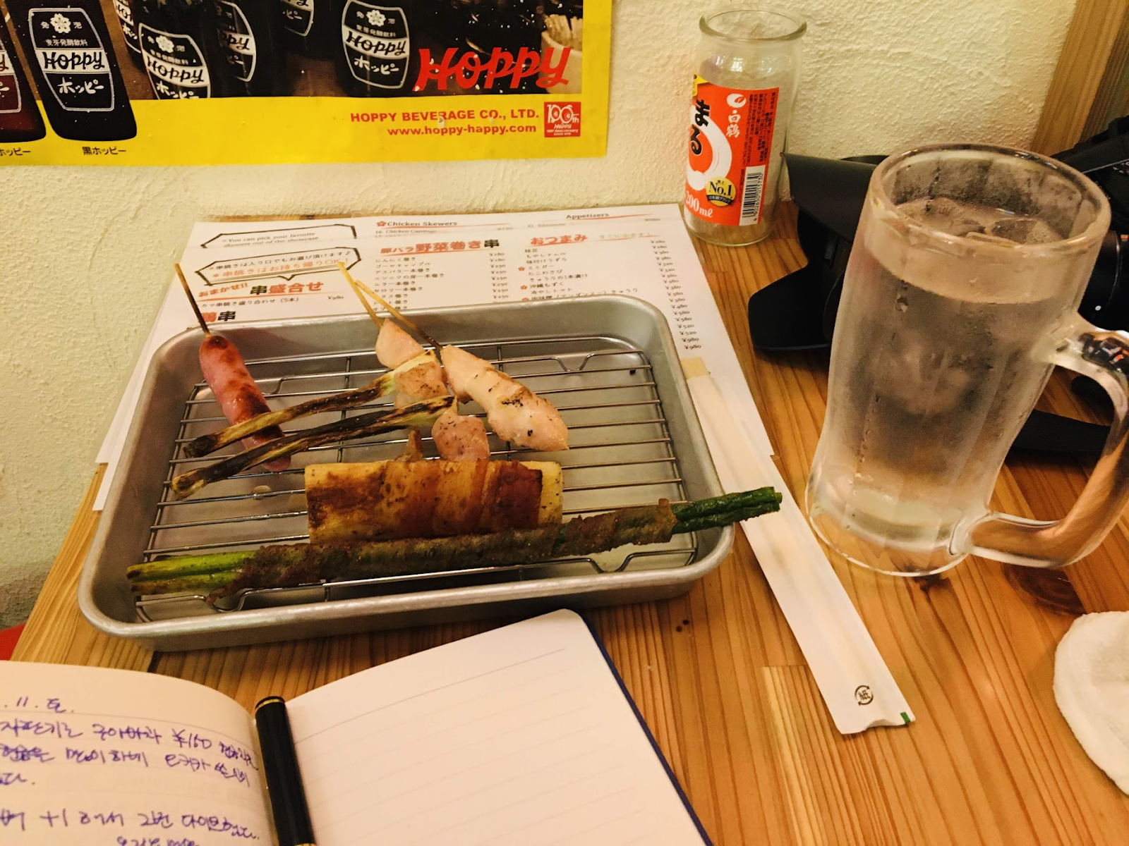 3차로 다시 야키젠에 갔다. 모둠 꼬치와 장어꼬치, 생맥주와 병맥주를 마시고 2,760엔 쓴 것 같다.