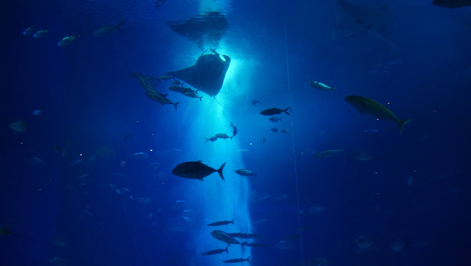 츄라우미 수족관은 야간 개장을 해서 저녁에 들어갔다.