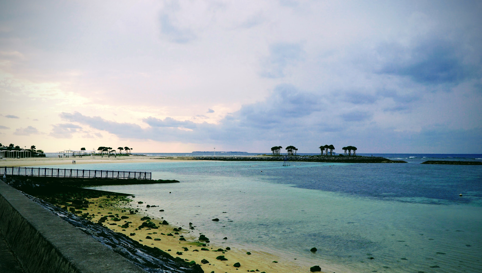 츄라우미 수족관 북쪽에 방풍림이 울창한 마을이 있는데, 숙소에서 무료로 빌린 자전거로 가보았다. 경치도 좋고 아름다웠다. 겨울만 아니라면 바다에 발을 적셔도 좋을만큼.