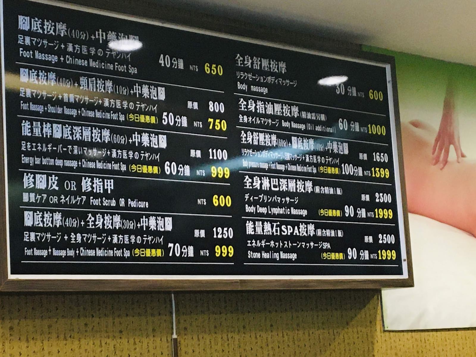 마사지샵을 검색하고 찾아갔는데 가게가 이전을 해서 주변에 손세차장을 하고 있는 분께 마사지샵을 문의했더니 거기 일하고 계신 분이 자기가 일하고 있는 마사지 샵이 있다고 추천. 택시도 불러주셔서 택시비 100위안 내고 999위안짜리 전신 마사지 받았다. 타이페이에서 받았던 마사지는 아팠는데 여기서는 아픈 것 없이 잘 받았다. 가니까 한국인 관광객 두어명이 받고 있었고, 한국인 가이드를 만났는데 자기는 대만아가씨를 만나서 결혼하고 여기 산다고 했다. 타이루거 택시투어를 추천했는데 오토바이로 했다니까 상당히 놀라워했다.