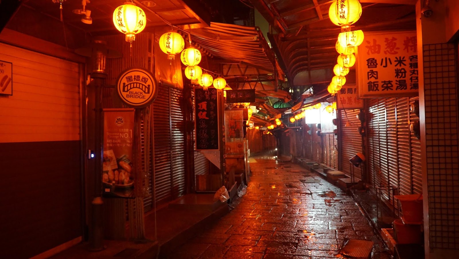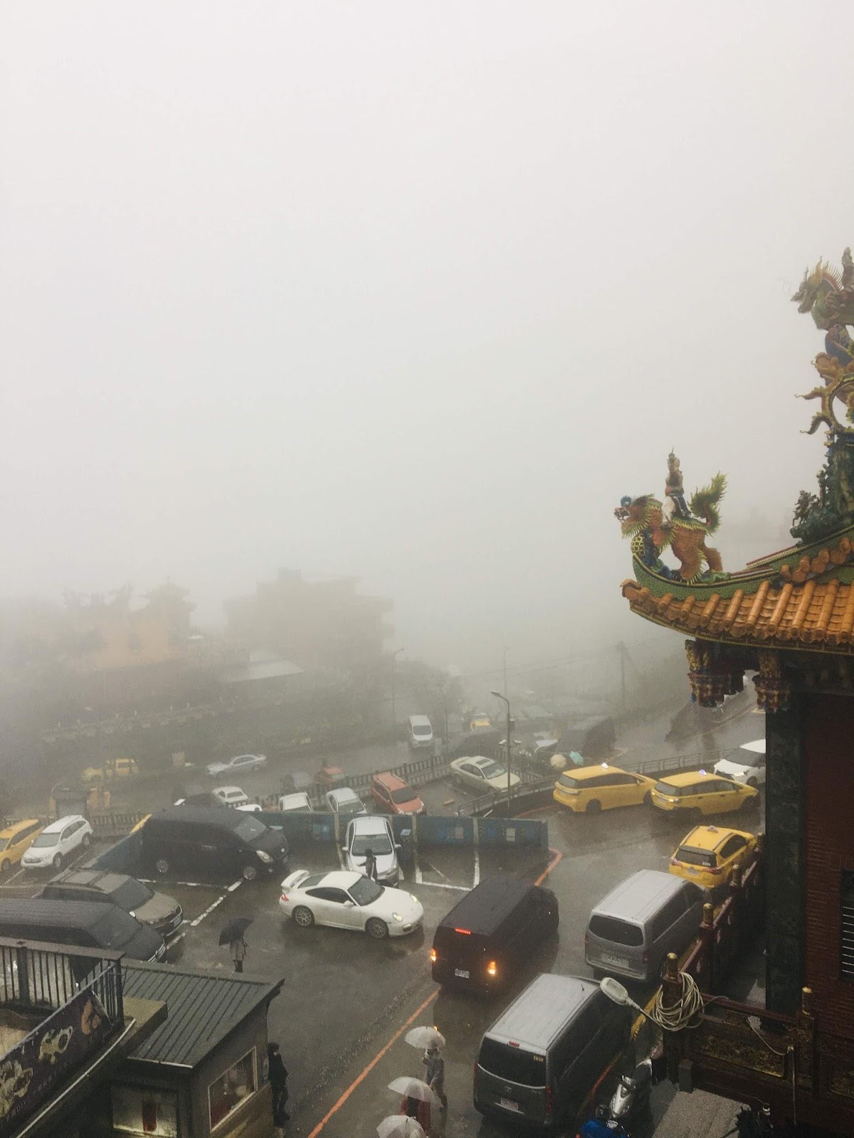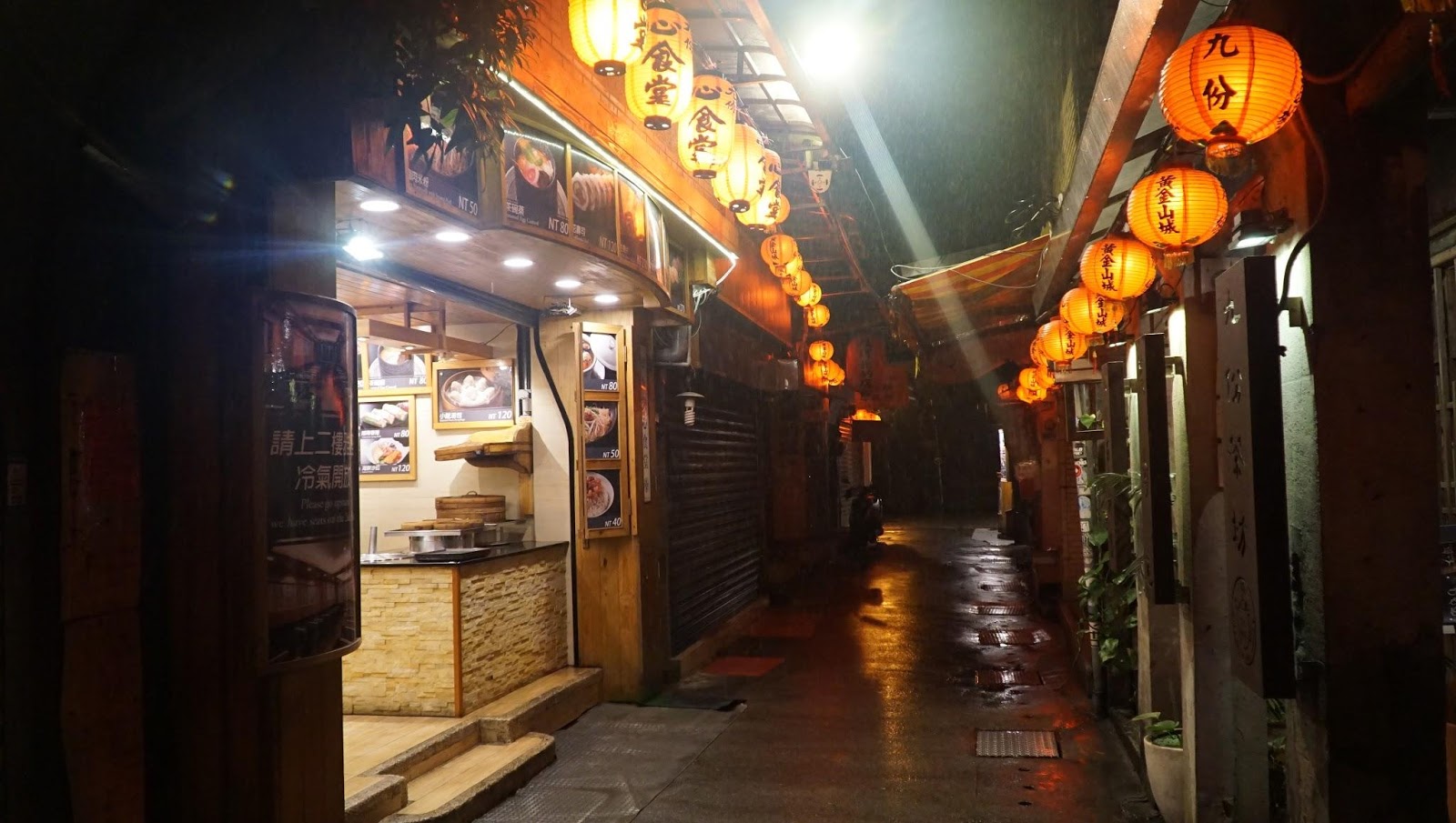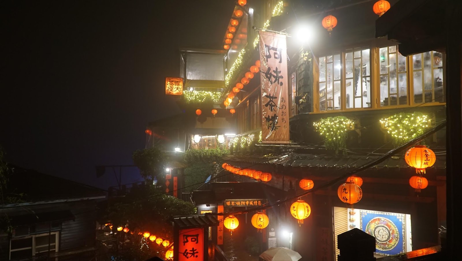 루이팡 역에서 버스타고 올라가면 금방이다. 비가 오는 데도 역시 관광객으로 미어 터진다. 주펀을 영화 《센과 치히로의 행방불명》의 배경이라고들 하는데, 공식적으로 미야자키 하야오가 아니라고 했다. 주펀은 1989년, 영화 《비정성시》의 배경이 되는 곳이다. 1945년에서 50년대 대만의 아픈 역사를 다루는 영화라 매우 의미있는 영화이다. 영화의 시대적 배경을 간단하게 요약하자면, 일제통치하에 있던 본성인(정착해 살 던 사람으로 대만을 고향으로 생각한다)이 일제가 패망하면서 좀 세상이 좋아지려나 했는데 그 자리를 차지한 외성인(중국 대륙에서 넘어 온 사람으로 대만을 고향으로 여기지 않는다)들이 일제시대보다 더 탄압하는 데다가 온갖 부정부패를 저지르고 본성인을 친일파나 공산주의자로 몰아서 학살(2.28사건, '얼얼바 공원'과 국립대만박물관을 추천한다. 국립고궁박물원이 아니다.)하고 대만을 외성인인 국민당 장제스가 통치한다. 이 영화를 기점으로 대만 사람들은 자신의 정체성을 되돌아보게 되었다고 한다. 계엄령이 40년만인 1987년에 해제되고 영화가 1988년에 촬영했으니 그럴만도하다. 암튼 대만의 이 역사를 돌아보면 우리나라 이승만, 제주 4.3, 광주 5.18, 박정희, 전두환 등이 마구 중첩된다. 우리나라는 그나마 단일 민족이라는 데 대만은 그것도 아니니…