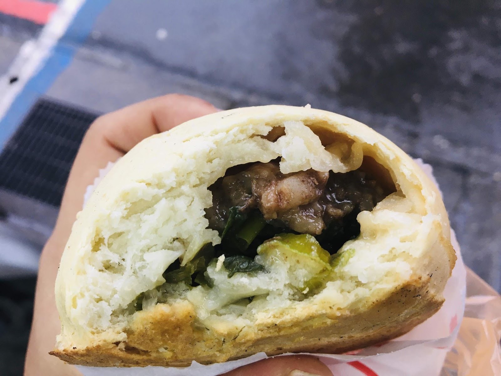 근처 시장에서 고기만두 사먹었다.