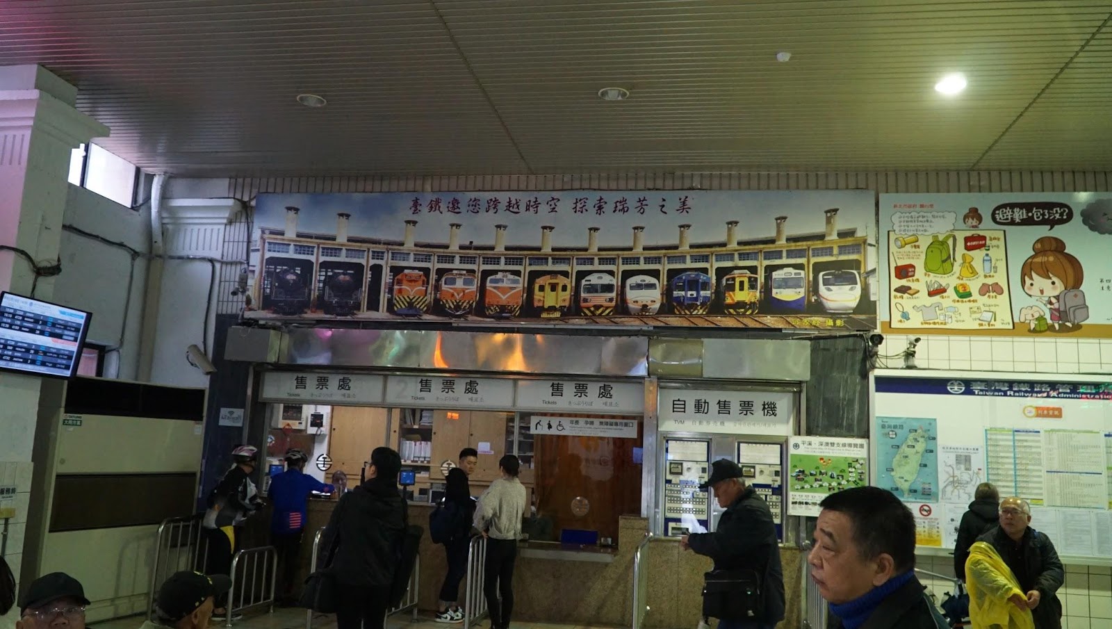 원래는 루이팡 역에서 고양이 마을(허우퉁) 쪽에서 1박 하려 했는데 저렴한 숙소를 찾지 못해서 지우펀(九份, 한국어로 ‘구분’이다. 아홉 집 밖에 없던 외진 마을이라서 한 집이 나가서 사오면 항상 아홉개로 나누었다는 데서 유래한다)에 저렴한 숙소를 잡았다. 타이베이는 숙박료가 비싸고 주펀은 관광지라 미어 터지지만 일-월 사이는 여유가 있으리라 보았다. 체크인 시간에 맞추느라 고양이 마을에는 못 가보고 바로 주펀으로 향했다.